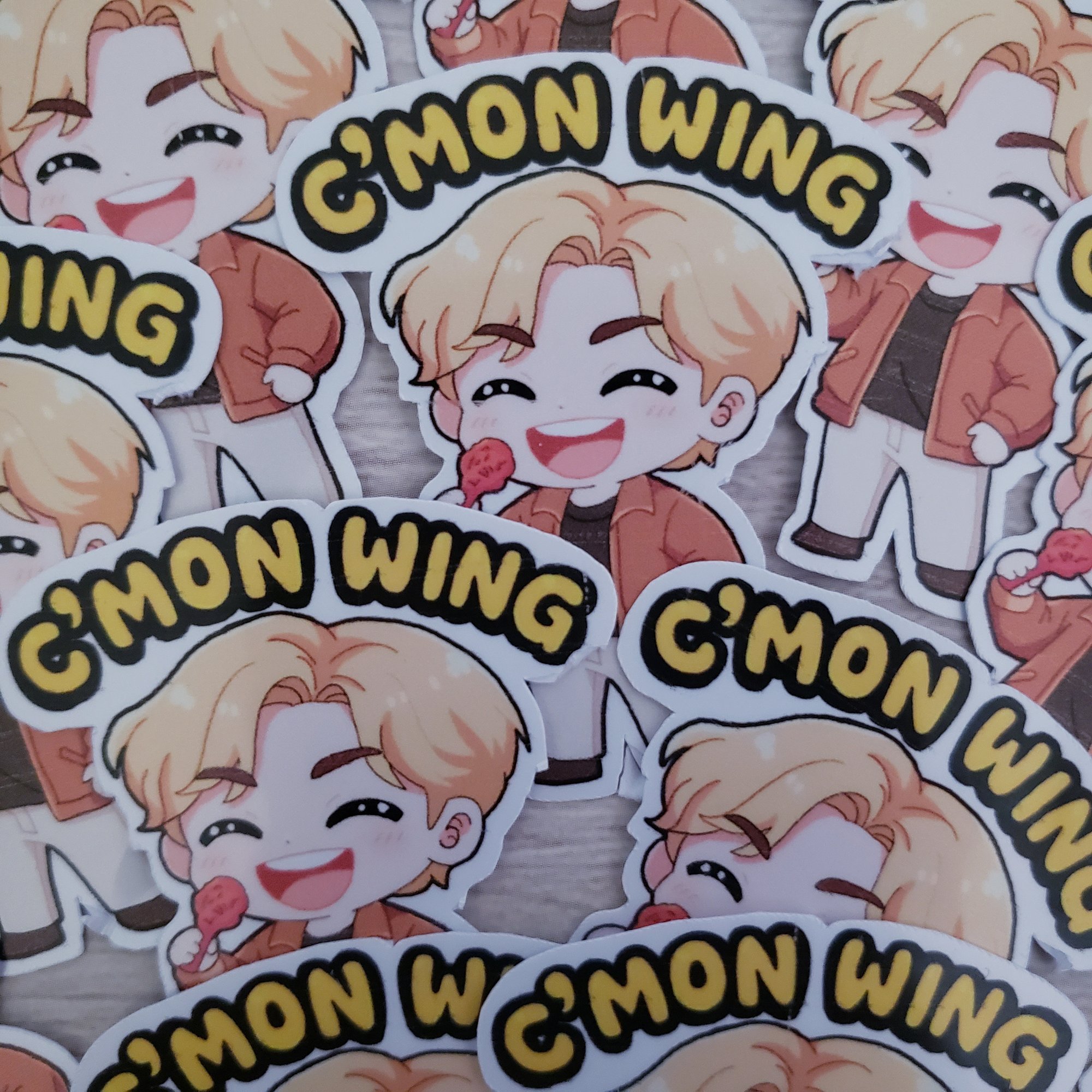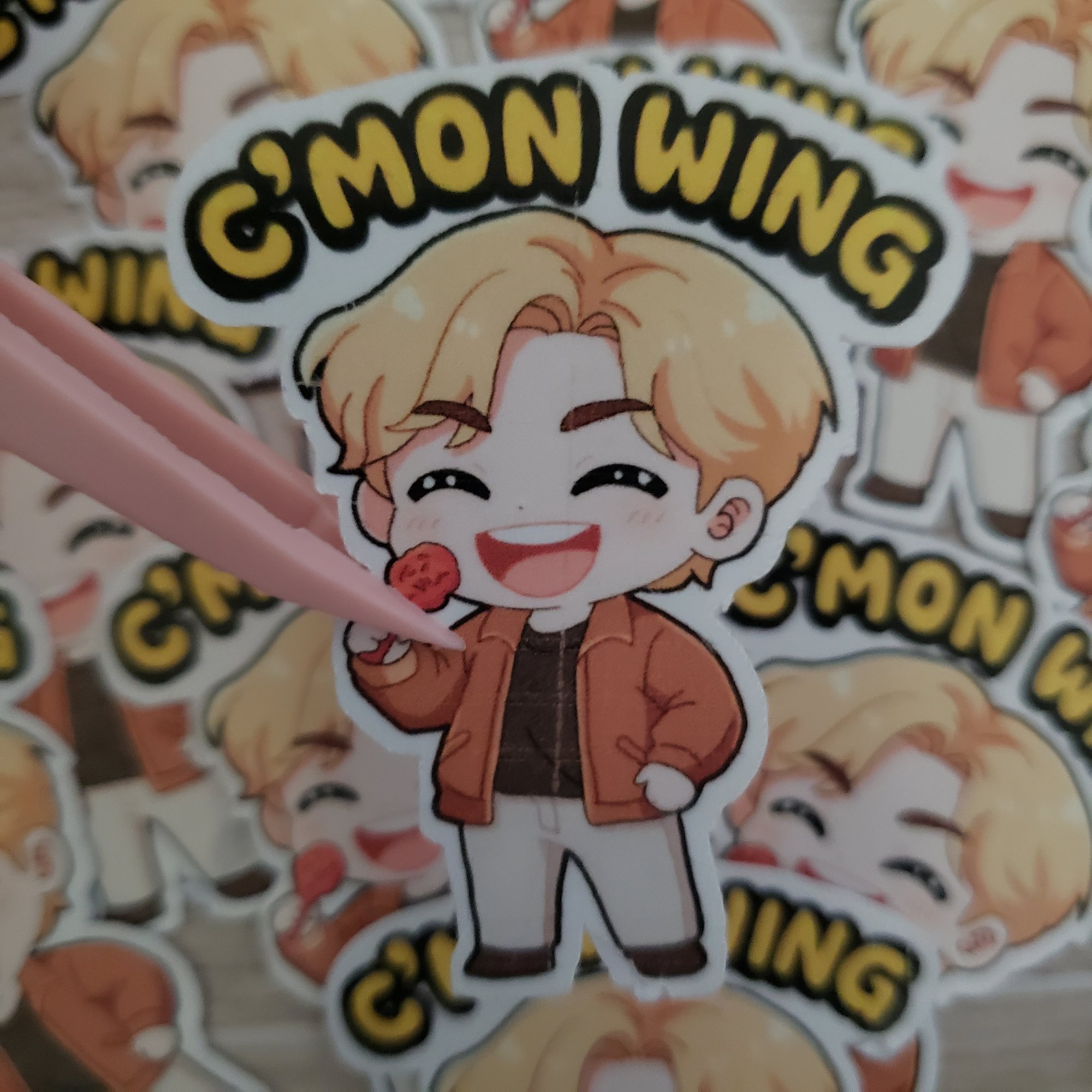 Finally, the iconic "C'MON WING" blonde moment is here in chibi form! This handmade die-cut vinyl sticker is the perfect companion for your water bottle, lightstick, or laptop. Designed with love and a lot of creative chaos.